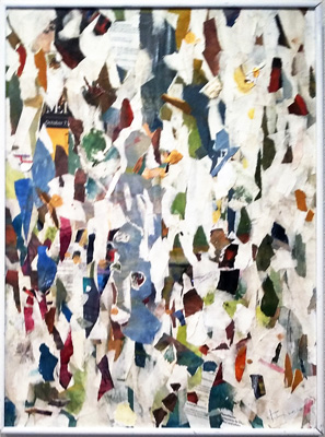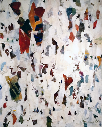コートギャラリー国立は国立駅から歩いてすぐの心地のいいギャラリーです。6月2日、まだ陳列途中ですが、いい感じになりそうです。80号2点連作出品しています。かつての作品を切り裂いてコラージュしています。