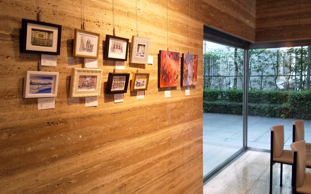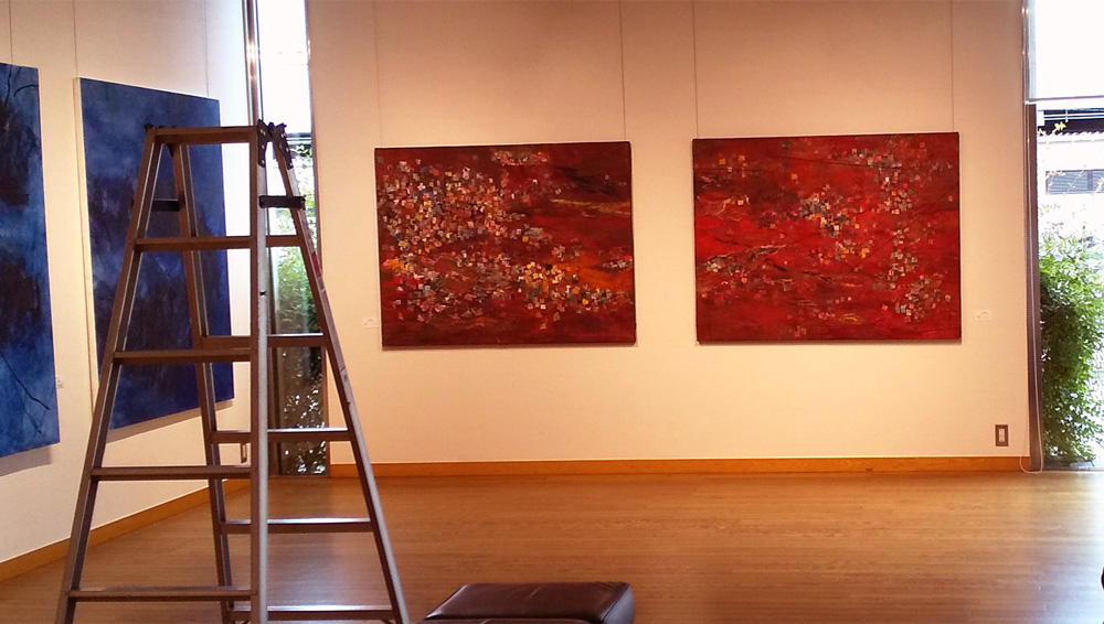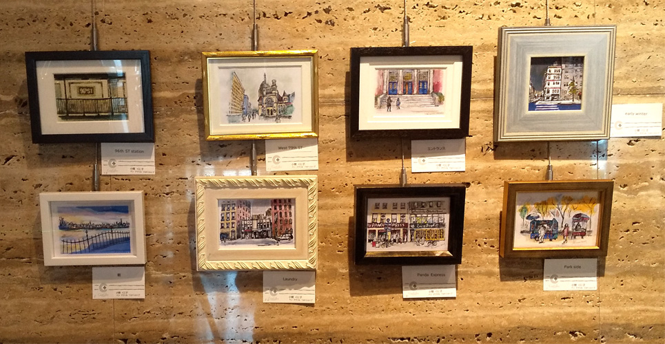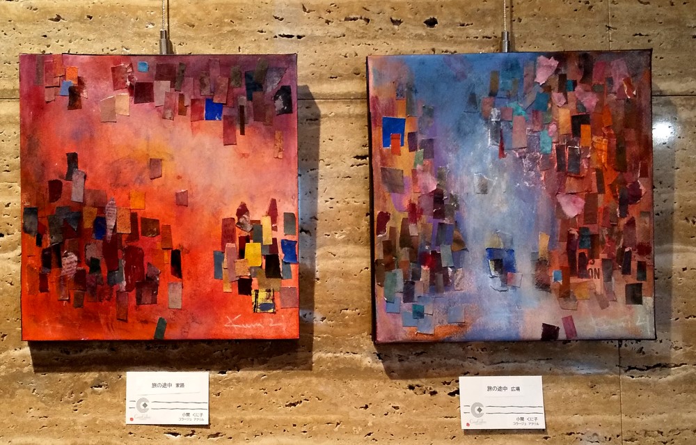 existence2021 2021.06.06 2021年 6月3日~8日 コートギャラリー国立 DSC_0714 DSC_0726 kunisan’s works 左 旅の途中 hide and seek f80号 連作 アクリル絵の具 コラージュ 左下 旅の途中 家路(左) 旅の途中 広場(右) 30㎝×30㎝ アクリル絵具 パステル コラージュ 右下8点 ニューヨーク市街風景 ハガキサイズ ペン アクリル